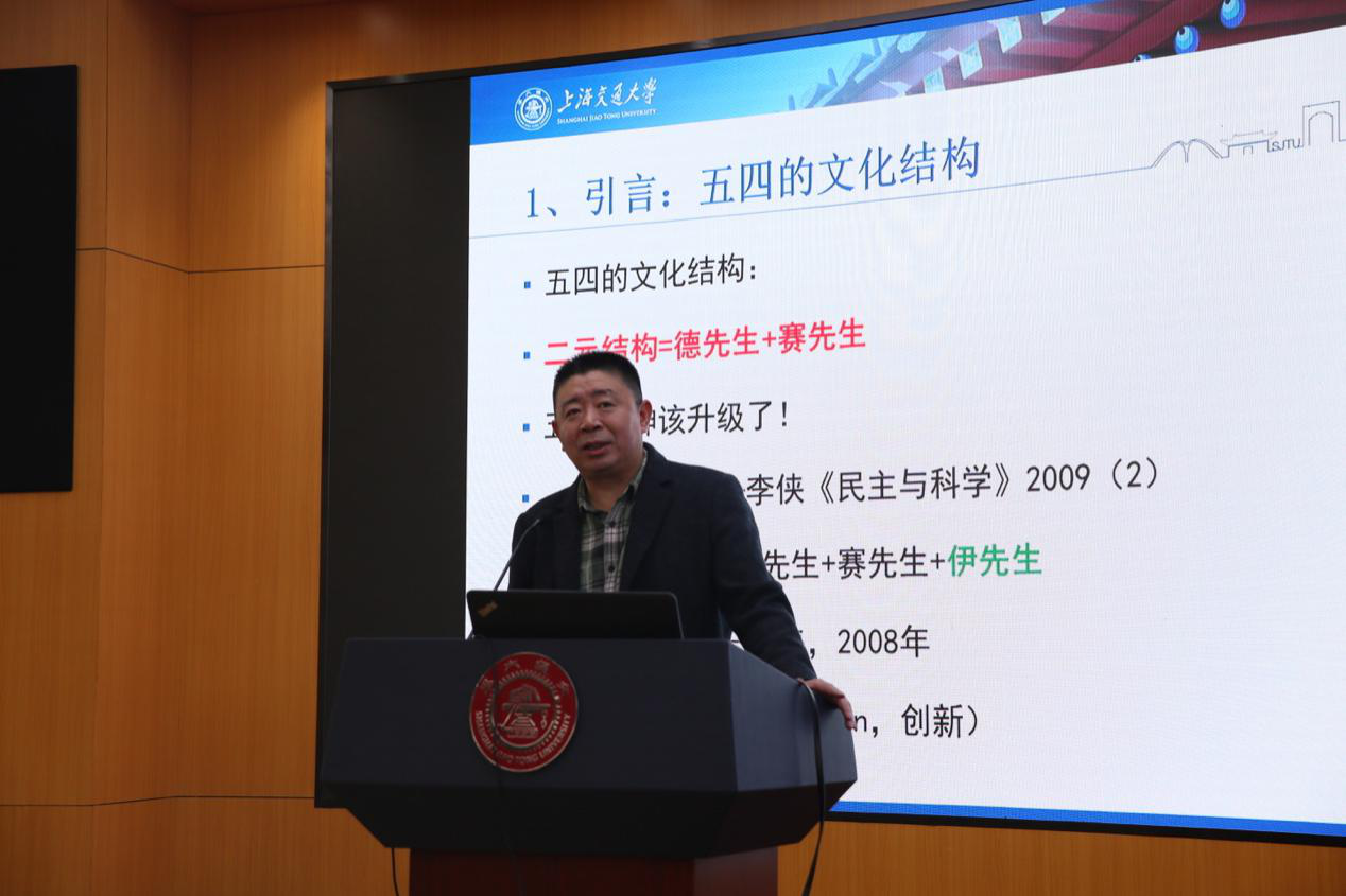 李侠教授以升级版的五四文化结构引入,即由德先生加赛先生的二元结构升级为德先生加赛先生加伊先生(Innovation,创新)的三元结构,提出了中国传统文化是具有高度弹性的“文化拼盘”的结构特点,分析了中国文化的四层结构,由外而内分别是文化的器物层次,提供效率与公平的制度层次,决定社会秩序的规范层次和群体的精神支撑的价值层次。相应地,科学文化的四层结构分别是科技产品的器物层次,建制与评价体系的制度层次,精神气质的规范层次和追求真理的价值层次。