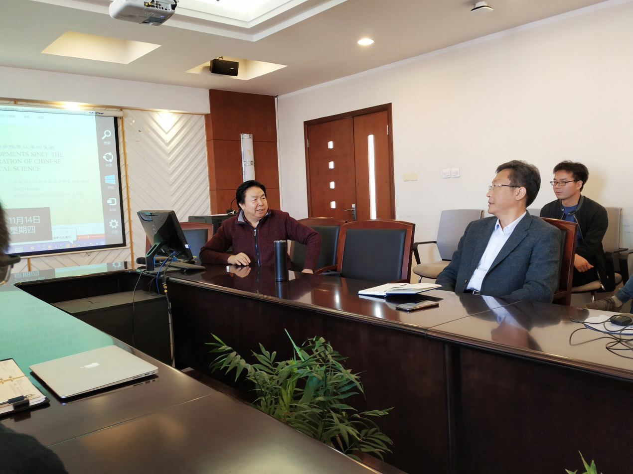 11月14日上午十点,中国社会科学院政治学研究所前副所长、中国政治学会前秘书长、博士生导师杨海蛟研究员以“新中国70年政治学的发展历程”为主题为电影天堂 师生做了一次精彩的学术报告,报告由电影天堂 特聘教授王岩主持,史宏波副教授、周凯副教授及十余名硕博研究生参加。