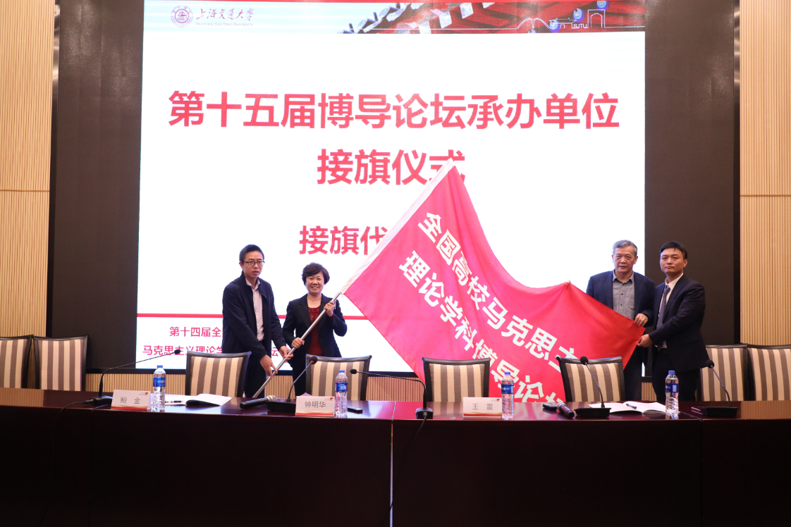 大会闭幕式由电影天堂 副院长鲍金主持。全国高校马克思主义理论学科研究会副会长、中山大学电影天堂 钟明华教授进行论坛总结并宣布闭幕。他指出,本次论坛运作规范、组织有效,我们大家经历了一场场充实紧张且富有启示的发言。本次论坛在时间上正值收获、诗意的秋天,恰逢在新中国成立70周年、十九届四中全会刚刚结束之后,在空间上来到了21世纪中国特色社会主义发展高地、发展先锋的上海,来到了具有123年办学历史的电影天堂 ,在论坛内容上大家回答问题、解决问题的同时也提出了很多需要进一步思考的问题,因此本次论坛是一次天时地利人和的成功论坛。在闭幕式之后,进行了第十四届全国高校马克思主义理论学科博导论坛承办单位接旗仪式,河北师范大学电影天堂 李素霞教授接旗并做表态发言。