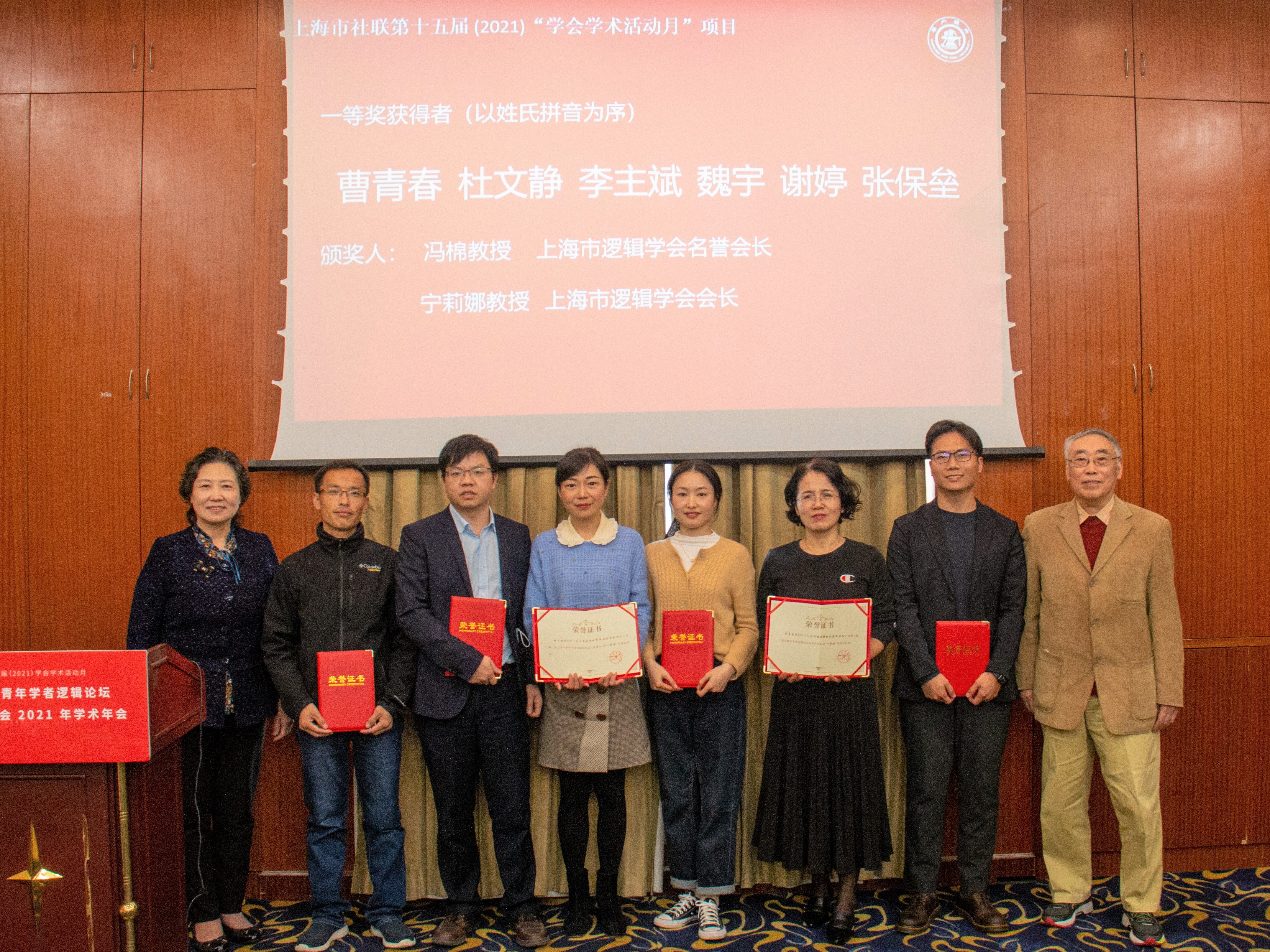 会议最后举行了颁奖仪式。上海市逻辑学会副会长、华东政法大学缪四平副教授宣读第八届上海市青年学者逻辑论坛征文获奖名单,宁莉娜和冯棉、黄伟力和晋荣东、张留华和陈伟分别为一等奖、二等奖和优秀论文奖获得者颁发了获奖证书,勉励青年学者在逻辑研究的道路上不断前进,取得更出色的研究成果。
