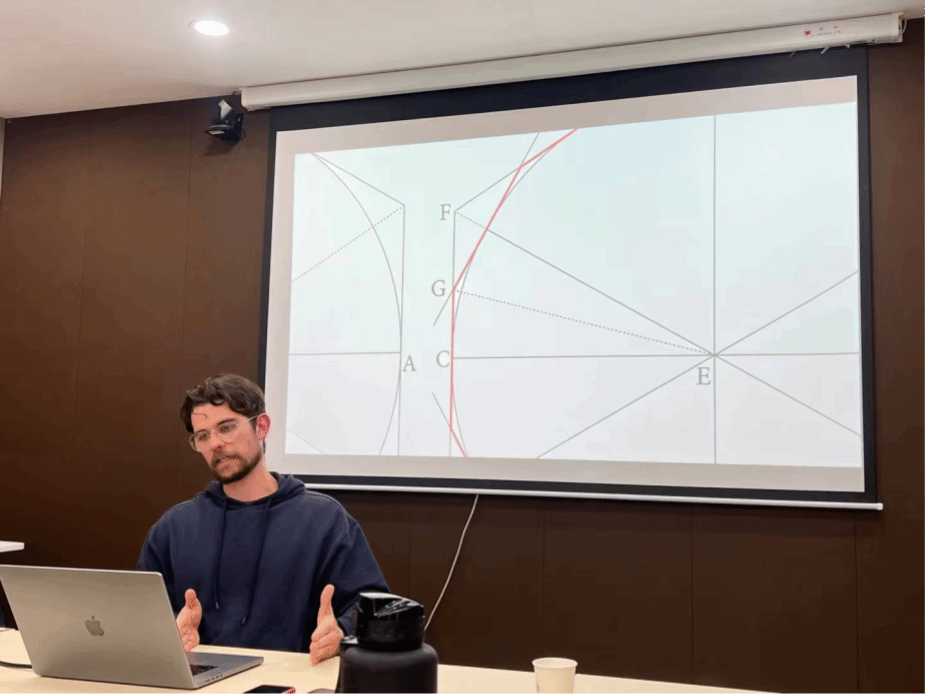 Luiz博士后为大家详细地展示了阿基米德如何求得圆周率的方法。对此,纪志刚教授指出,我们可以将之与中国古代数学中刘徽、祖冲之对圆周率的求解进行对比,这正是我们下一步合作交流的重点。