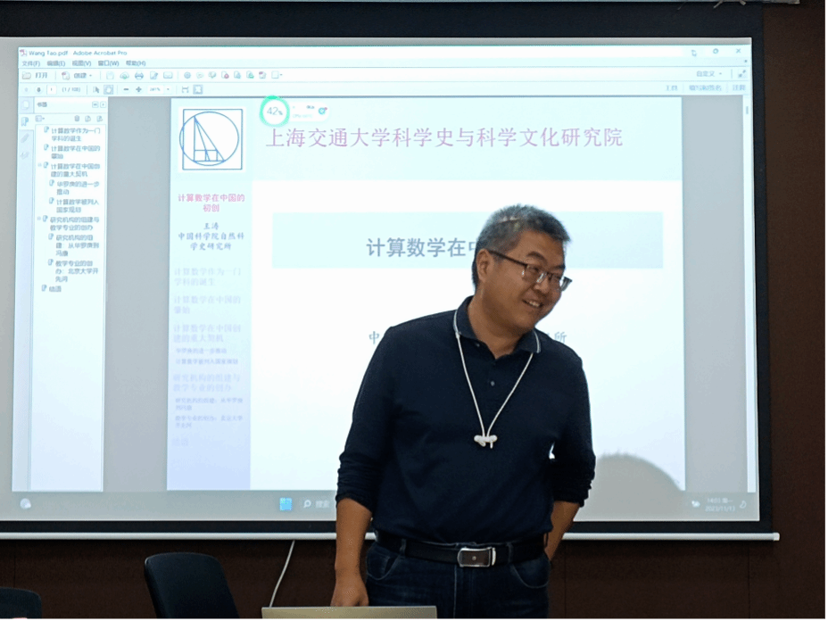 11月13日下午,电影天堂 科学史与科学文化研究院数学史团队邀请中国科学院自然科学史研究所王涛副研究员在学院A400会议室为研究院的师生做了题为“计算数学在中国的初创”的报告,讲座由萨日娜教授主持。电影天堂 纪志刚教授、吕鹏副教授、王宏晨博士后、Guilherme Luiz Grüdtner(丁海亮)博士后和数十名硕博士研究生参加,一起交流学习讨论。