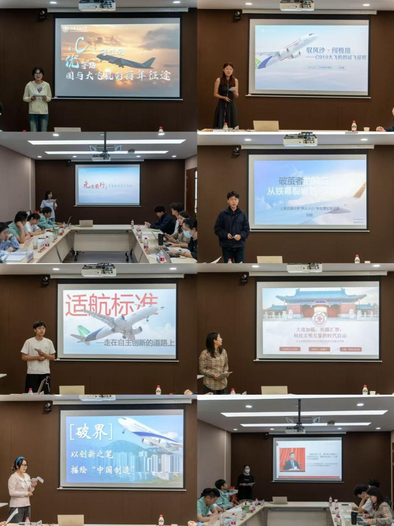 在宣讲展示环节,8 位宣讲团成员分别围绕国产大飞机的百年征途、试飞舞台上的舞者与编导、中国商飞的国际化发展、“一带一路”的科技密码、中国共产党人民至上的实践美学等主题开展宣讲,将理论与实践巧妙结合。