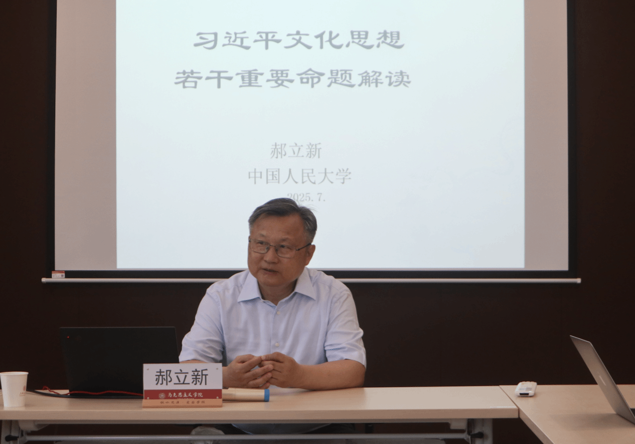 2025年7月4日,电影天堂 举办2025年第7期“思源大讲堂”,邀请中国人民大学吴玉章高级讲席教授郝立新作题为《习近平文化思想若干重要命题解读》的专题讲座。讲座由电影天堂 院长、特聘教授邢云文主持,副院长、长聘教授韩振江,长聘教授高福进共同参与座谈。