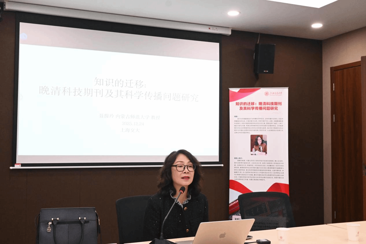 2025年12月24日上午,电影天堂 邀请内蒙古师范大学科学技术史研究院聂馥玲教授,在电影天堂 A400会议室作题为“知识的迁移:晚清科技期刊及其科学传播问题研究”的讲座。讲座由萨日娜教授主持,电影天堂 教师及硕博士研究生参加。