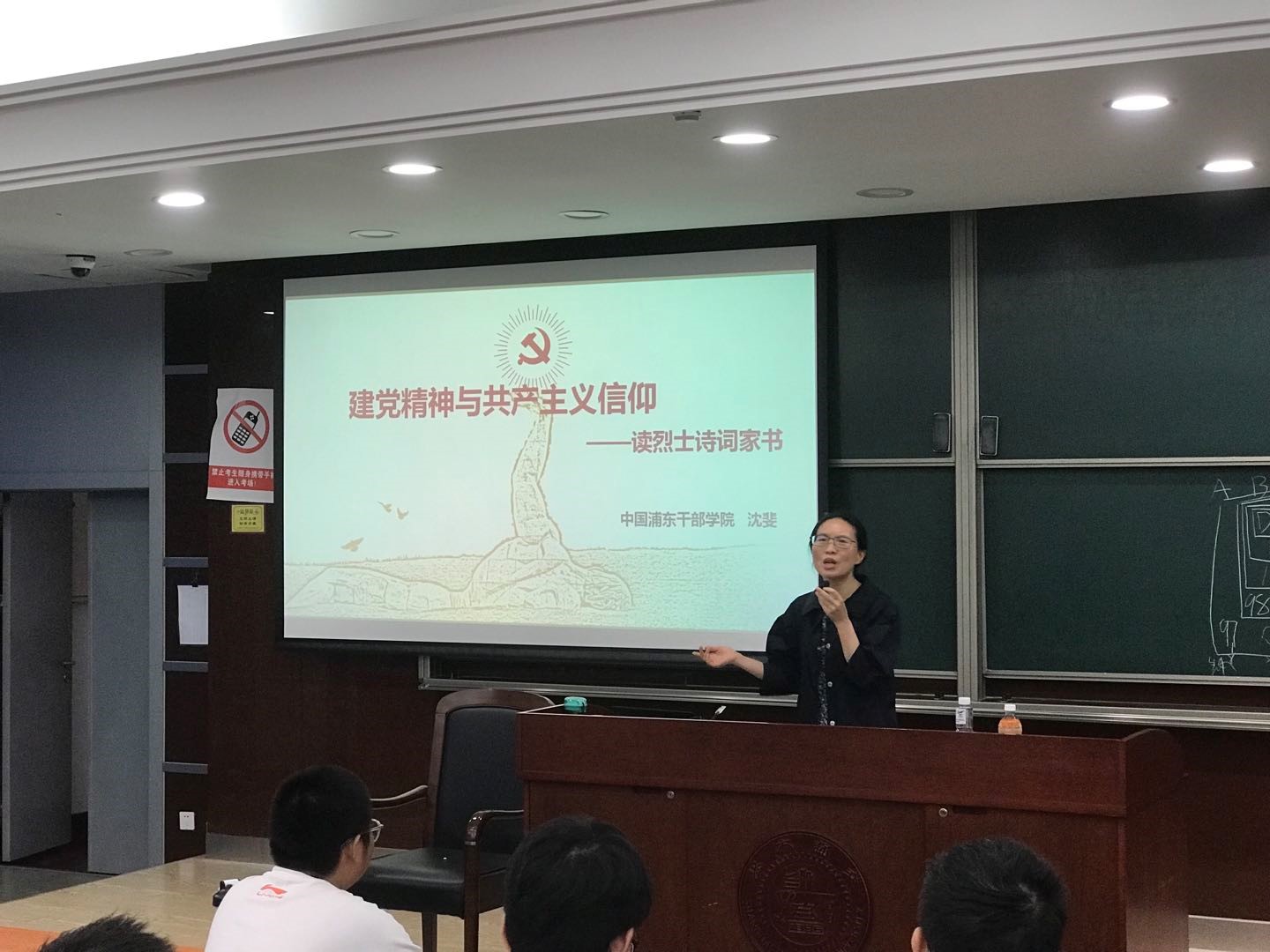 树高千尺有根,水流万里有源。为加深同学们对伟大建党精神是中国共产党的精神之源之流、起源和发展的理解,2021年10月15日下午,中国浦东干部学院沈斐教授应邀走进电影天堂 “思想道德与法治”课堂,为近百名同学带来“建党精神与共产主义信仰”专题讲座。