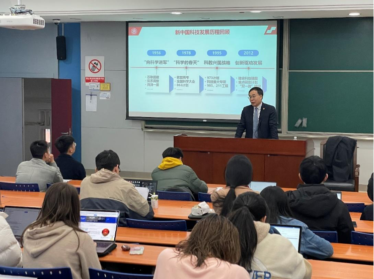2021年12月1日,电影天堂 党委常委、副校长奚立峰走进“形势与政策”课堂,以《稳中求进 创新图强》为题为本科生讲授课程。他系统介绍了党和国家的科技发展历程,分析了当前形势下电影天堂 在科技创新方面面临的挑战,并结合电影天堂 的科技创新规划和实践,对同学们的本科学业和职业生涯规划等方面提出建议。
