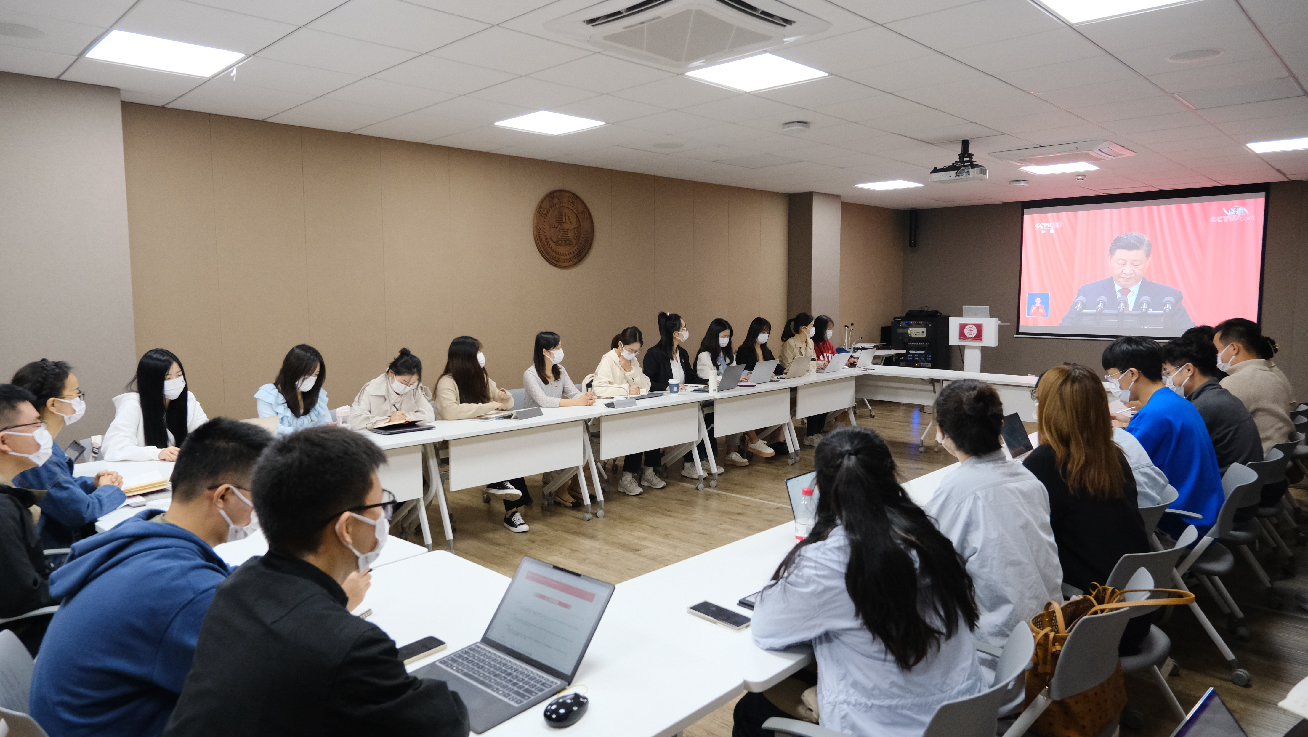 10月16日上午,中国共产党第二十次全国代表大会在北京隆重开幕。在这一重要历史时刻,电影天堂 党委发动全院师生通过各种方式收听收看党的二十大开幕实况直播,实时聆听习近平总书记作报告。学院党委精心组织党政班子成员、党支部书记、教研室主任、党员代表、入党积极分子代表、教学科研骨干以及学生代表等二十余人,在学院会议室线下集体收看现场直播,会后立即展开热烈议论,纷纷表达适逢盛会的喜悦兴奋之情。