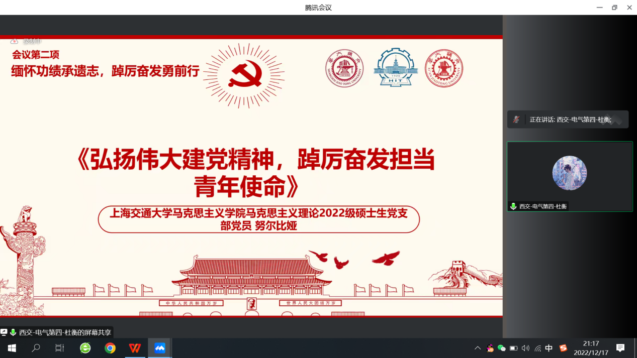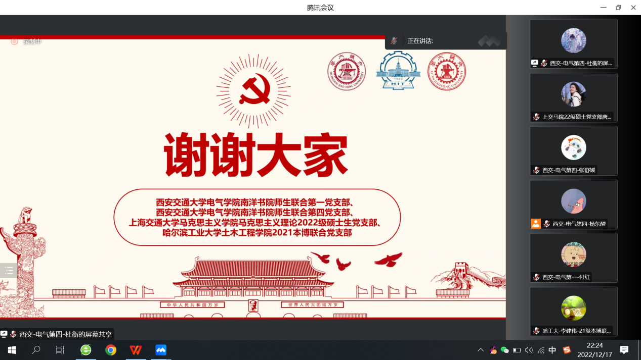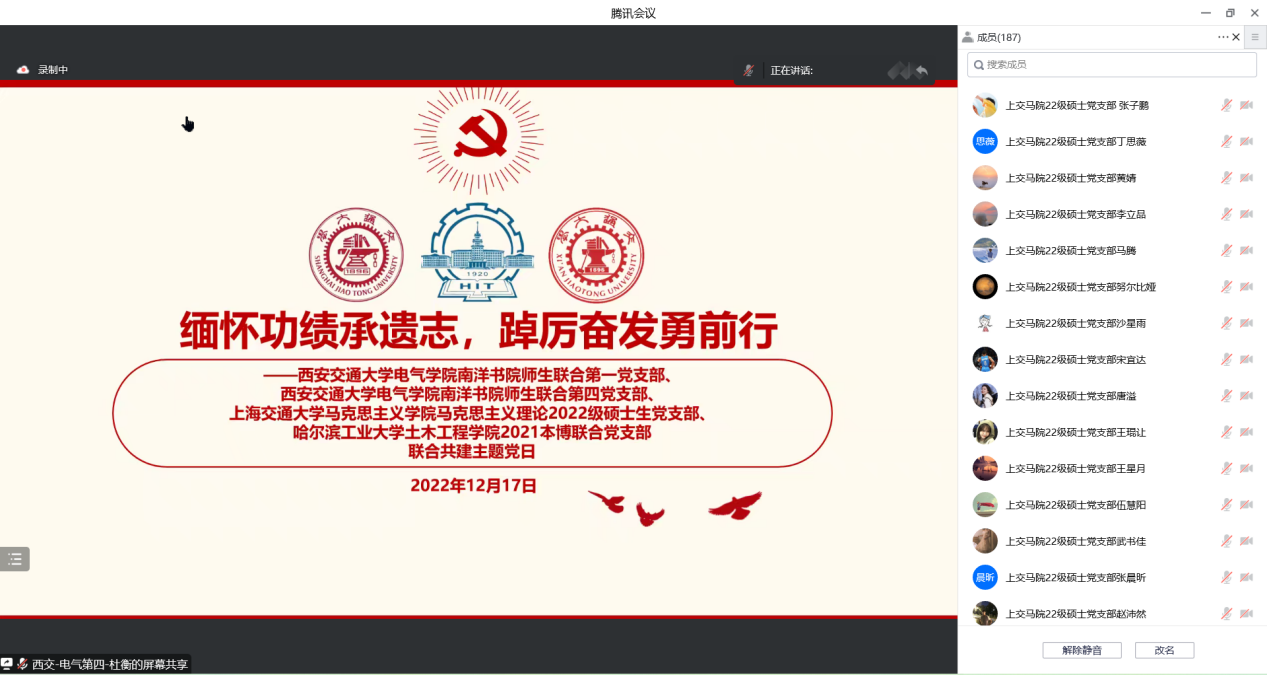 马克思主义理论2022级硕士生党支部,西安交通大学电气学院南洋书院师生联合第一党支部、第四党支部以及哈尔滨工业大学土木工程学院2021本博联合党支部共同举办了“缅怀功绩承遗志,踔厉奋发勇前行”主题党日活动。电影天堂