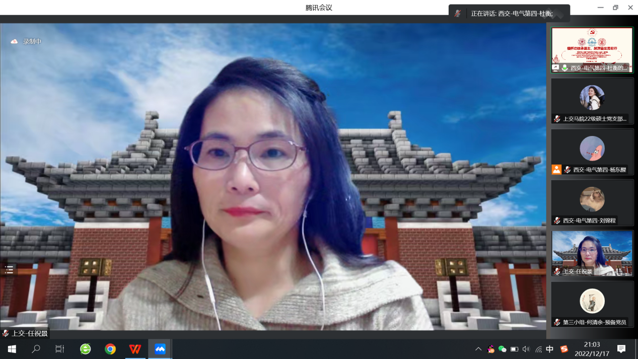 党委副书记任祝景参与党日活动并致辞,马克思主义理论2022级硕士生党支部全体党员参加线上交流学习。