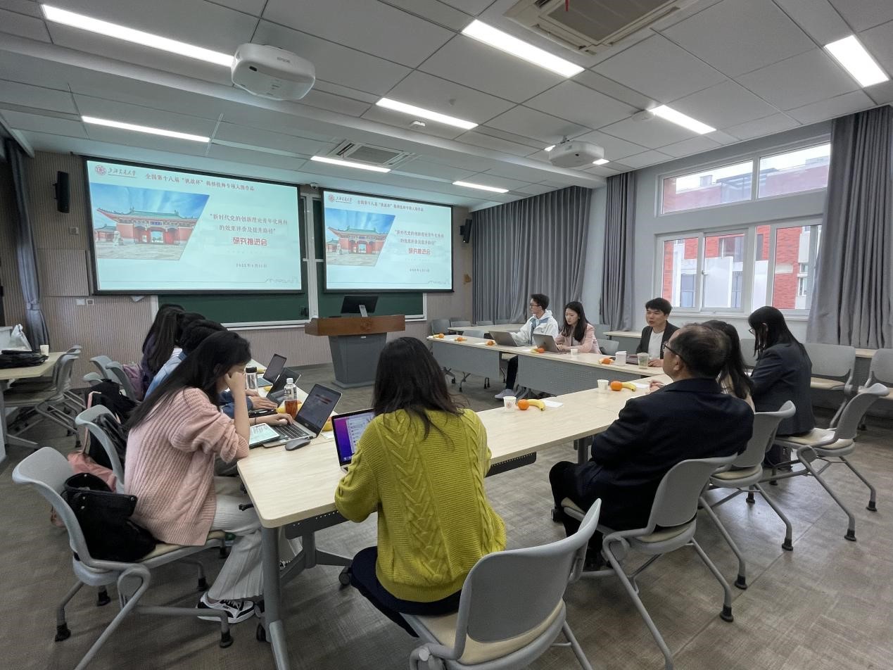 2023年4月11日,由马院硕士研究生黄婧同学负责牵头,刘伟、邓军、张娅三位老师指导的第十八届“挑战杯”竞赛“揭榜挂帅”专项赛入围作品“新时代党的创新理论青年化阐释的效果评价及提升路径”研究推进会在东中院4-406召开。项目组邀请了电影天堂 党委书记董玉山,电影天堂 党委副书记、纪委书记任祝景,电影天堂 学生工作办公室主任杨波怡参加,团队指导教师及学生成员出席会议。会议由刘伟副教授主持。