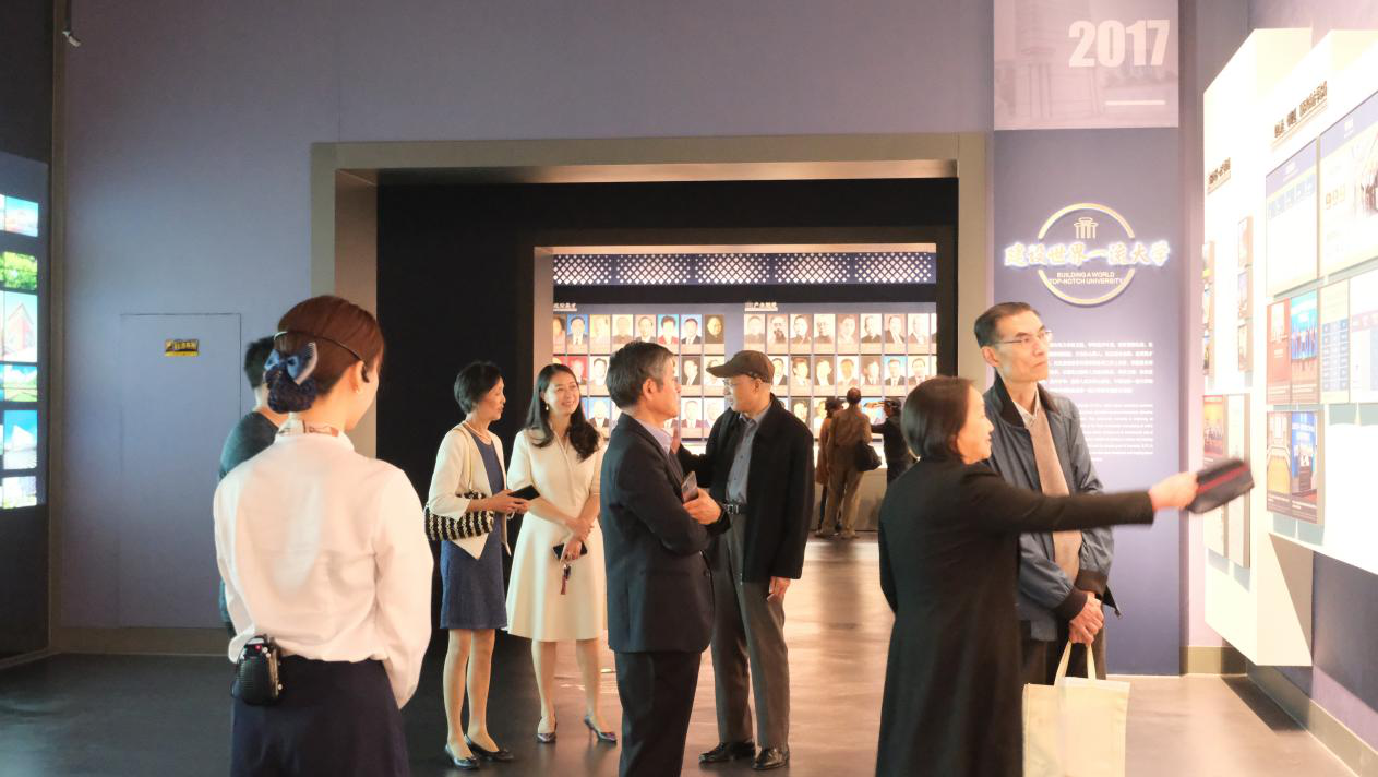 老同志返校后,首先来到文博楼,参观新建校史博物馆。通过全景式体验、参观,老同志们重温学校百余年来的文化传统、办学成果和社会贡献,并回忆起在学校的多年工作和生活经历,充分肯定了学校近年来的发展,纷纷表示学校取得如今的成就来之不易,是一代代交大人奋发图强、无私奉献的结果。