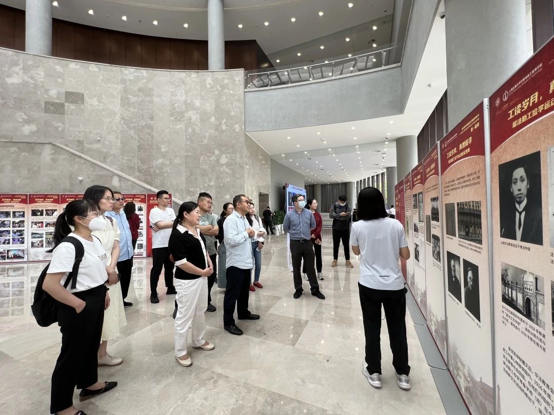 与会教师来到上海交大文博楼参观了由电影天堂 巴黎卓越工程师学院、电影天堂 档案文博管理中心、杨浦区委党史研究室、中国旅法勤工俭学蒙达尔纪纪念馆 (法国) 等单位联合主办的“两代青年跨越时空的使命追寻——纪念留法勤工俭学运动”图片展,学生讲解员详细介绍了周恩来、邓小平、陈毅、聂荣臻等党的早期领导人赴法勤工俭学、踏上革命道路、确立革命志向的故事,并讲述了当代交大青年带着“强国使命”赴法求学的故事,介绍了交大巴黎卓越工程师学院引进法国工程师培养理念和优质教学资源培育时代新人的经验。