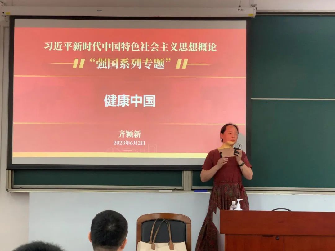 与此同时,生命科学技术学院齐颖新教授也以“健康中国”为主题主线,围绕习近平总书记关于“健康中国”的重要论述,结合自身科研经历和交大在医疗领域中的贡献讲授推进“健康中国”的战略意义和实现路径,让同学们系统了解党中央始终将保障人民健康放在优先发展的战略地位,深刻领悟人民健康是民族昌盛和国家强盛的重要标志。