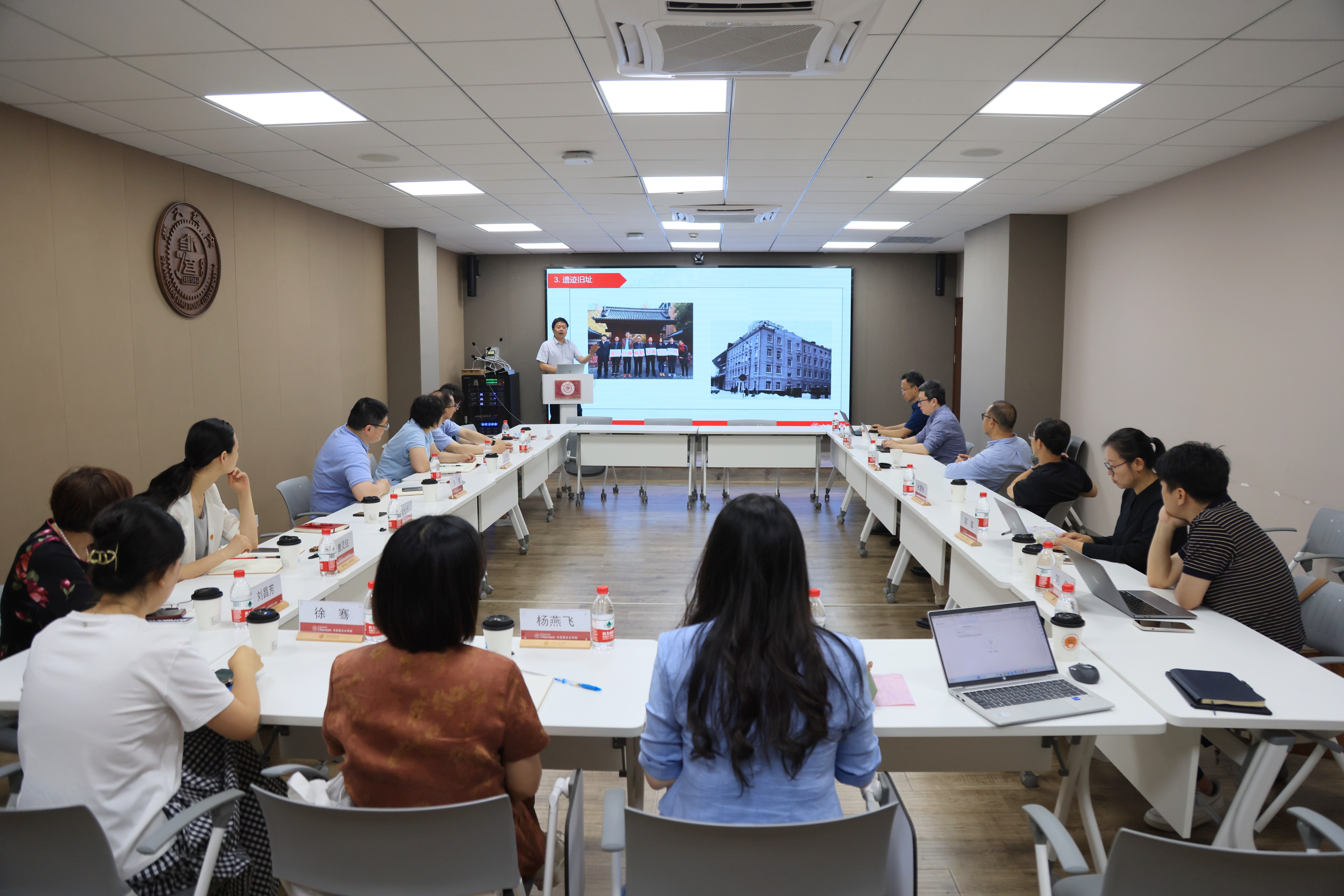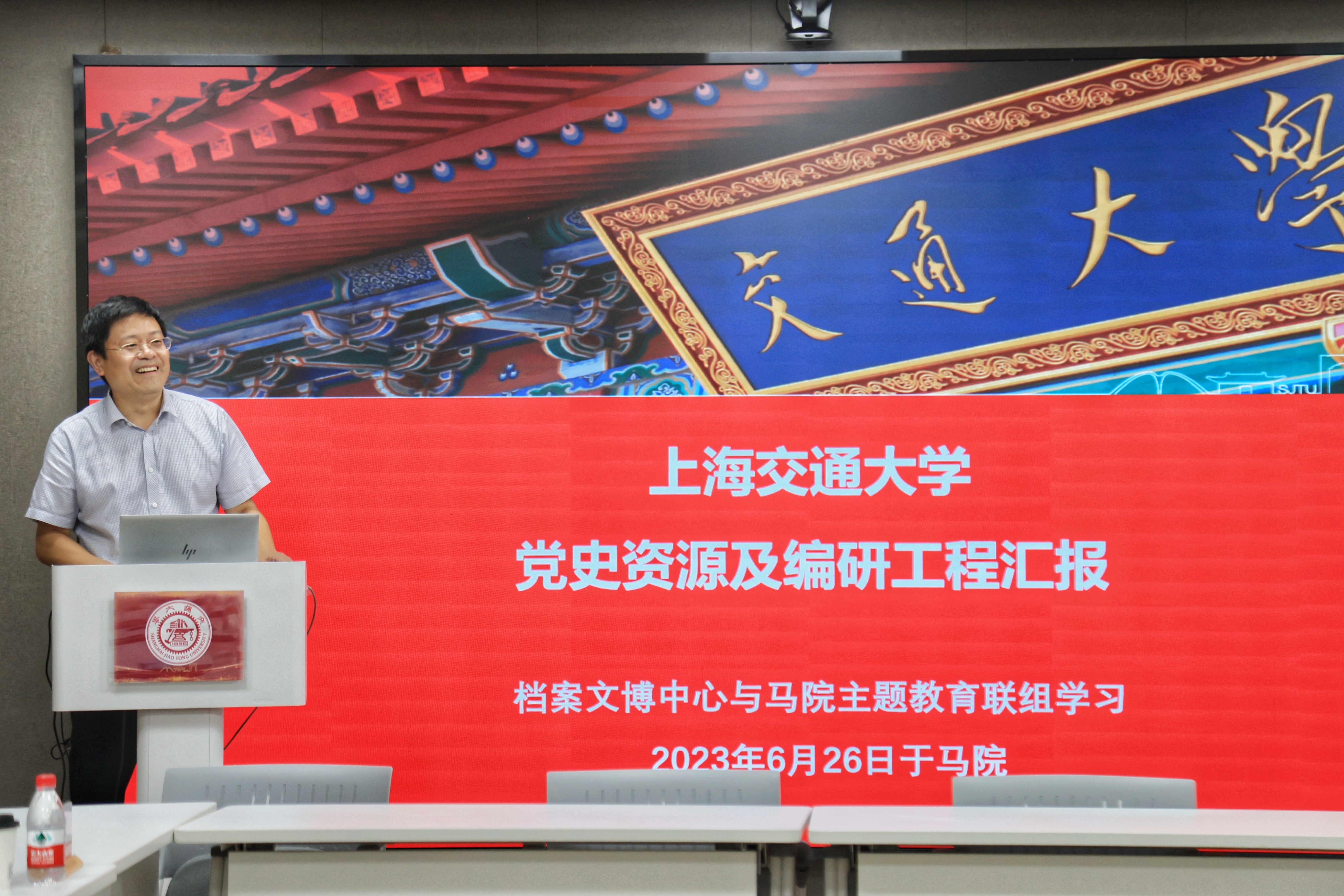 首先,欧七斤以《党史资源及编研工程汇报》为题作主题报告,他从“交大红色资源”“党史工程”“思政育人”等三个方面展开详细介绍。他强调,要持续拓展思政育人的红色资源和平台阵地,不断提升以史育人的品质与层次。他表示,作为一名思政教师,要将校史内容巧妙地融入到思政课的教学过程中,促进学生们对于思政课程内容的情感共鸣、理论共鸣和思想共鸣。