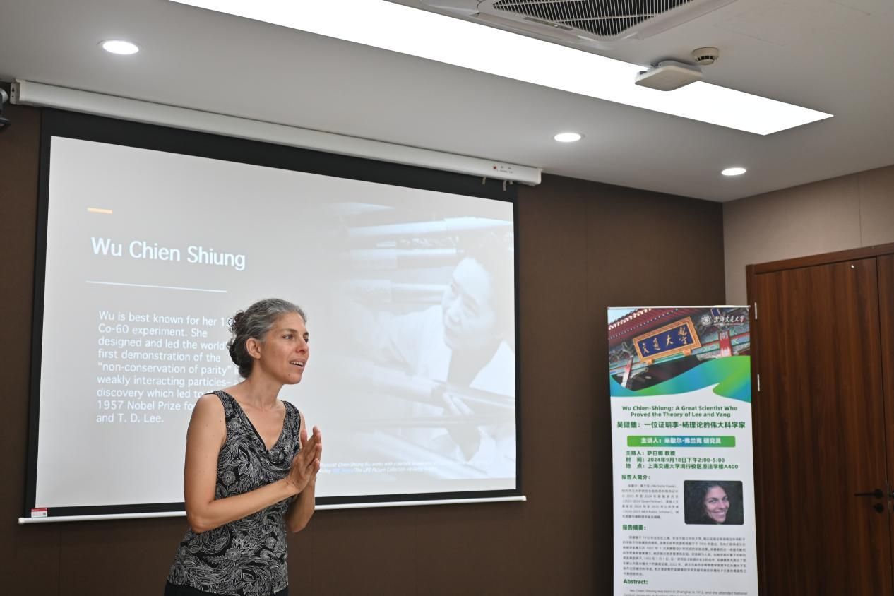 讲座前,萨日娜教授介绍米歇尔·弗兰克,作为纽约市立大学利昂利维传记中心斯隆研究员,她专注于研究美籍华裔物理学家吴健雄。师生们热烈欢迎米歇尔,她亦致谢电影天堂 的邀请。