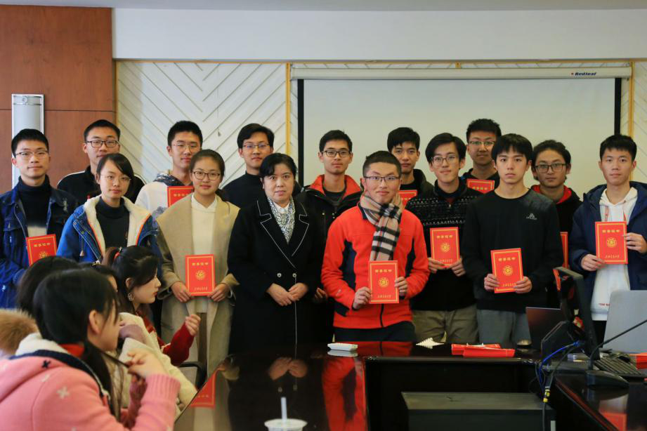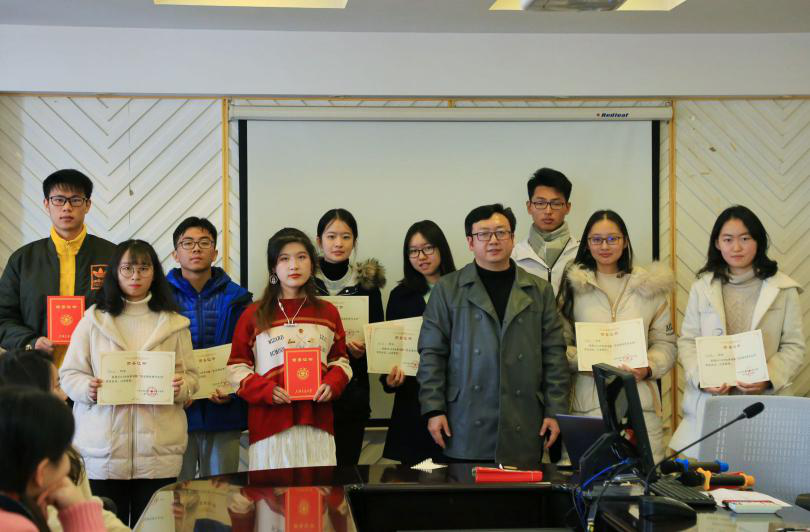 陈鹏宣布获奖名单并向各位同学表示祝贺。施索华、刘立萍老师为获奖同学颁发证书。