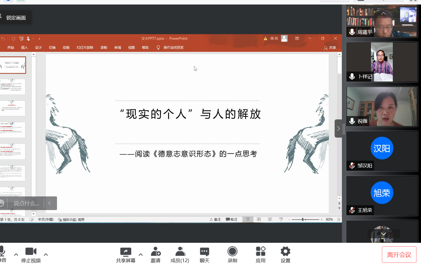 为提升“马克思主义基本原理”课的教学实效,4月27日,马克思主义基本原理教研室与党支部充分发挥“支部建在连上”的优势,以集体备课、教研室研讨与支部理论学习相结合的形式召开会议。会议内容主要包括,线上教学情况与问题的排查、教材重点章节的深度研讨、祝薇老师的马恩原著引读、疫情防控工作要求的学习领会等。本次会议以线上形式开展,由教研室主任、党支部书记周露平主持。