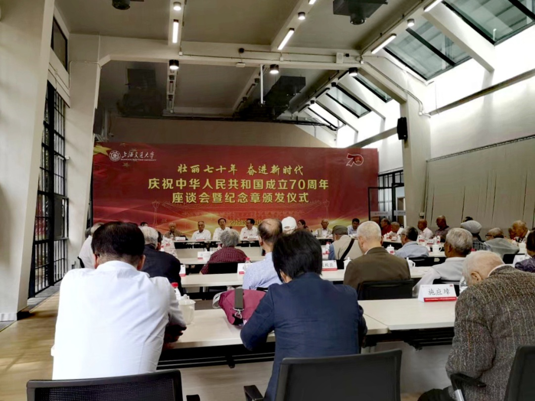 根据中央和上海市部署,9月26日上午,电影天堂 党委举行离休干部庆祝新中国成立70周年座谈,共话70年奋斗历程,共抒70年自豪情怀。会上,姜斯宪书记和黄震副校长向获得新中国成立70周年纪念章的老领导、老同志颁发了纪念章,表彰他们为新中国的诞生建立的不朽功勋,党委副书记顾锋主持会议。