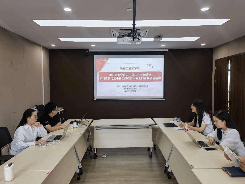 2024年9月25日,“毛泽东思想和中国特色社会主义理论体系概论”教研室党支部联合“思想道德与法治”教研室党支部开展学习贯彻党的二十届三中全会精神和全国教育大会精神主题党日活动。会议由“思想道德与法治”教研室党支部书记王金凤主持。