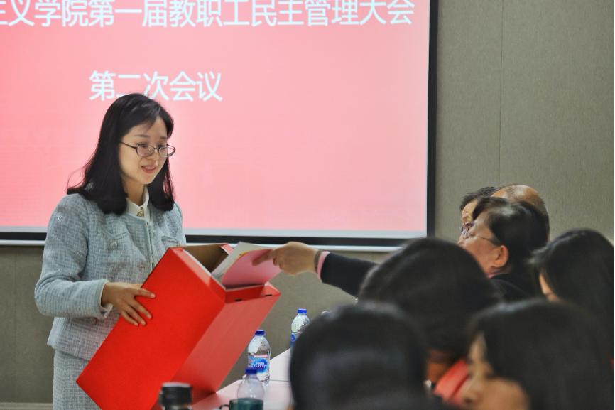 首先,电影天堂 工会主席高福进向教职工代表们汇报选举工作。他介绍了学校启动这项工作以来,学院工会遵照学校提名流程,稳步推进代表选举工作。党委副书记张濠向代表宣读选举办法草案,以及监票人、计票人名单。代表通过举手表决,一致通过该办法。