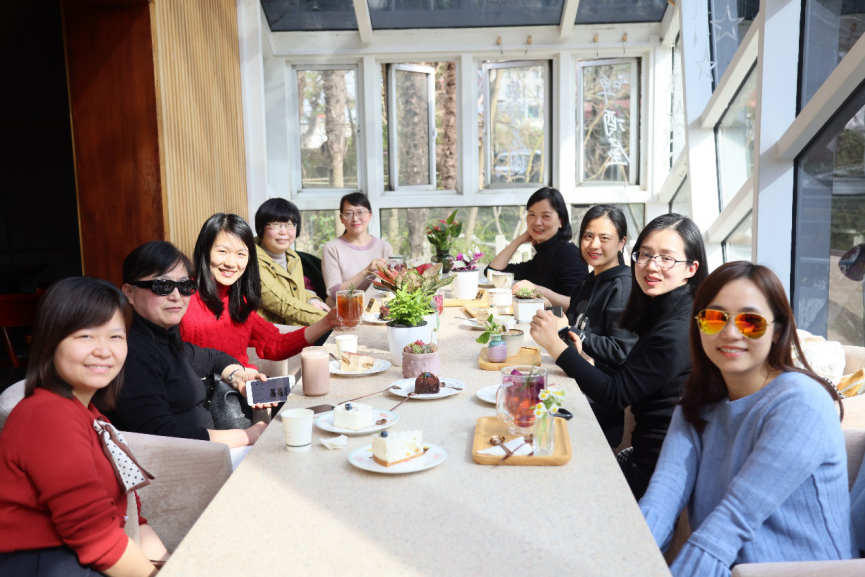 盈盈花盛处,佼佼马院人。春色还未来到,但电影天堂 的女性教师们却迎来了一场绿意盎然的妇女节特别活动。电影天堂 工会在得丘花园酒店的曼陀花园咖啡厅准备了精致餐点,为辛劳授课勤于政务的马院广大女性老师们提供了难能可贵的惬意时光。