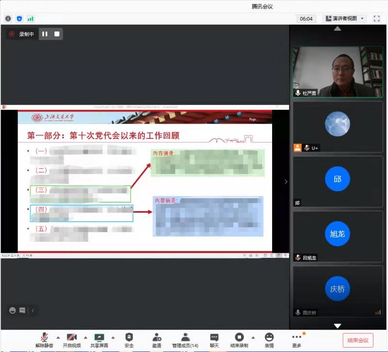 2021年1月12日中午,电影天堂 教工第二党支部与第四党支部联合举行支部活动,主题为“学习讨论学校第十一次党代会报告”。会议由黄庆桥老师主持,杜严勇老师作为学校的党代会代表,全程参与了学校的党代会,并在此次学习中详细介绍了党代会报告内容及学习体会。