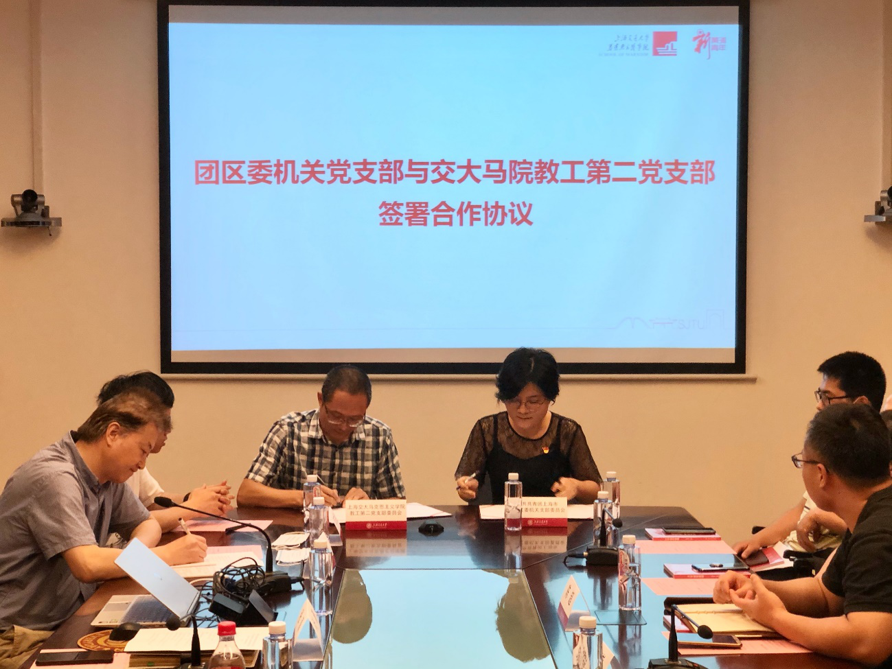 马院教工第二党支部书记杜严勇和黄浦团区委机关党支部书记褚巍巍分别代表双方党支部签署共建结对合作仪式。