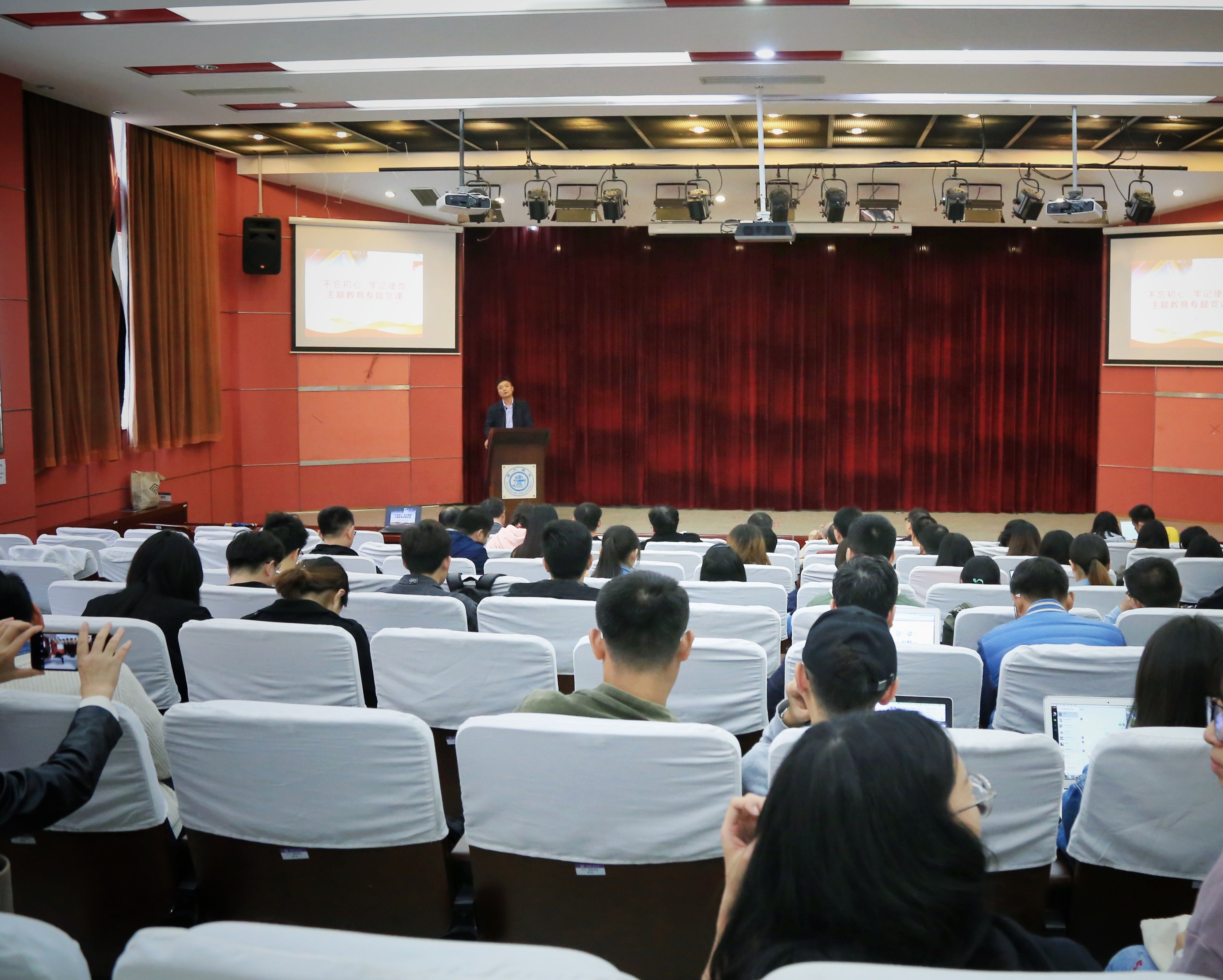 11月13日下午,根据“不忘初心、牢记使命”主题教育部署安排,电影天堂 党委书记王震为全院师生党员和入党积极分子上主题教育专题党课。