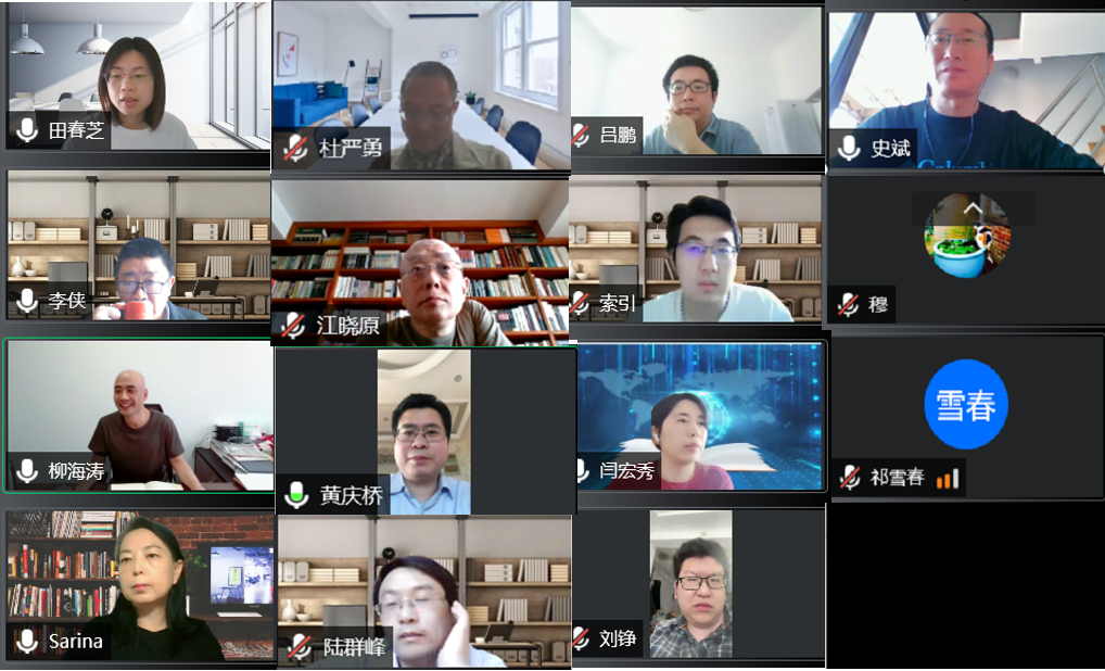 柳海涛对研究院老师在封控期间的科研教学成果作了简要介绍:李侠和杨蓉博士后在AHCI上发表学术论文,江晓原、杜严勇、陆群峰、闫宏秀、刘铮都有重要学术文章发表;沈辛成组织的“夫子夜话”和“技术史与人类未来青年工作坊”依然有序在线上开展。疫情带来很多不便,但老师们努力克服困难,认真为学生讲好每一堂课,组织好每一次活动。萨日娜、杜严勇、穆蕴秋、刘铮等同志分享了他们各自居家的上课和生活情况;田春芝博士后对发生在身边的抗疫事迹做了简短介绍。