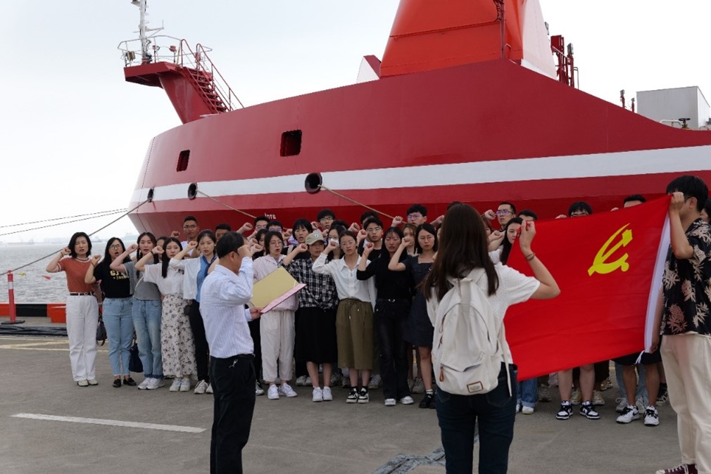 活动最后,在电影天堂 党委副书记杜夏明的带领下,全体师生党员在“雪龙2”号前重温入党誓词,为活动画上了圆满的句号。