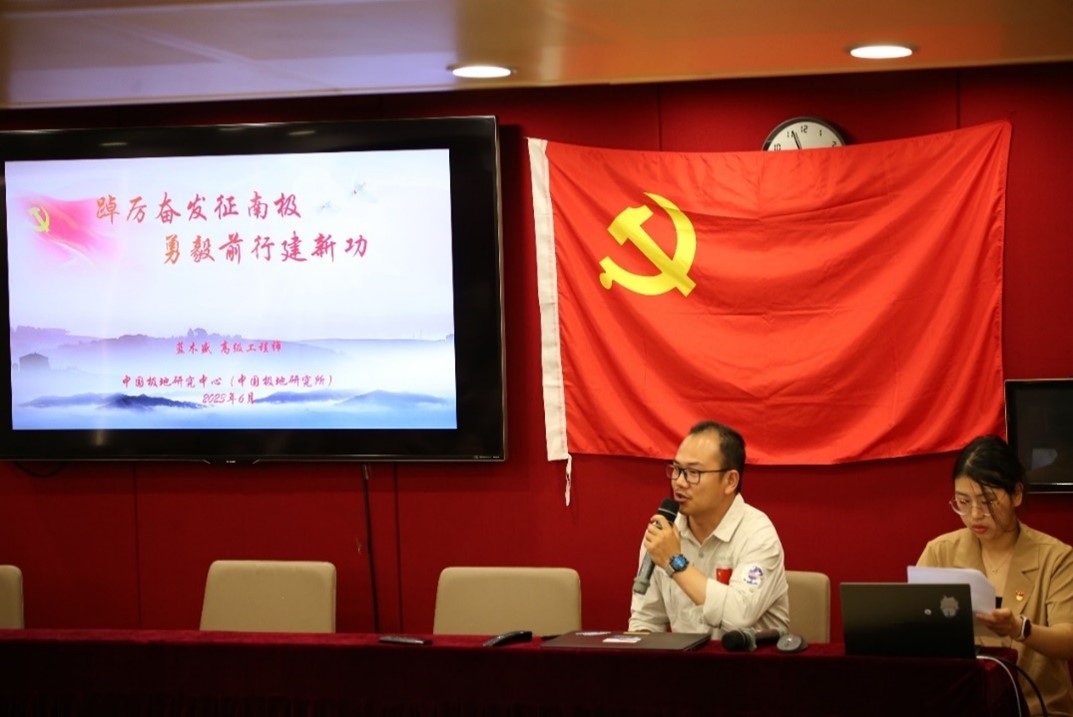 中国极地研究中心高级工程师蓝木盛为大家进行南极精神宣讲,他为大家详细介绍了中国极地科考的发展以及极地科考对于我国科研工作的重要作用,同时结合自身丰富的一线科研经验,为我们生动地讲述了“爱国、求实、创新、拼搏”的南极精神。