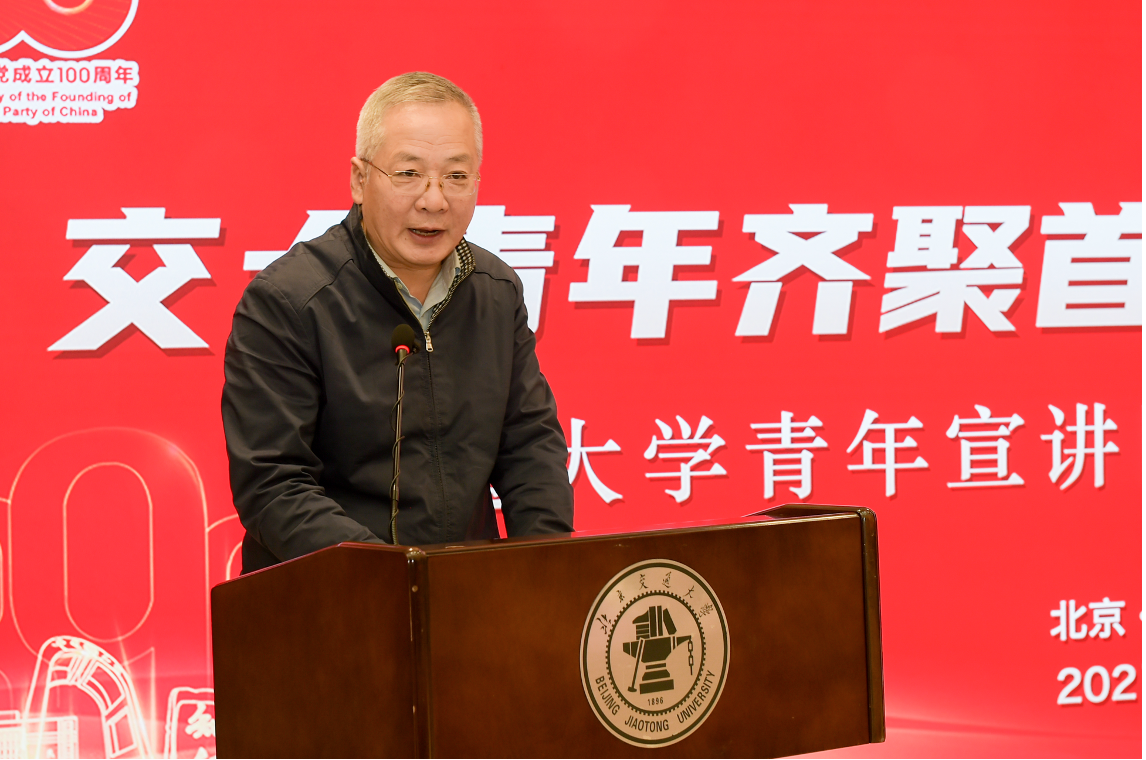 金秋十月,秋风送爽。在中国高等教育学会宣传工作研究分会支持下,10月16日,电影天堂 、北京交通大学、西安交通大学、西南交通大学齐聚北京交通大学,举办“交大青年齐聚首 奋进强国新征程”交通大学青年宣讲团成立暨首场宣讲活动。中国高等教育学会副秘书长郝清杰,北京交通大学党委副书记、副校长孙守光,教育部思想政治工作司宣传教育处副处长王磊,教育部新闻宣传中心移动传播处处长杨晨光,宣传工作研究分会副理事长宁秋娅,宣传工作研究分会名誉监事长蒋朗朗,电影天堂 党委常委、宣传部部长胡昊,西安交通大学党委常委、宣传部部长成进,西南交通大学党委宣传部常务副部长汪铮出席此次活动。活动由北京交通大学党委常委、宣传部部长蓝晓霞主持。