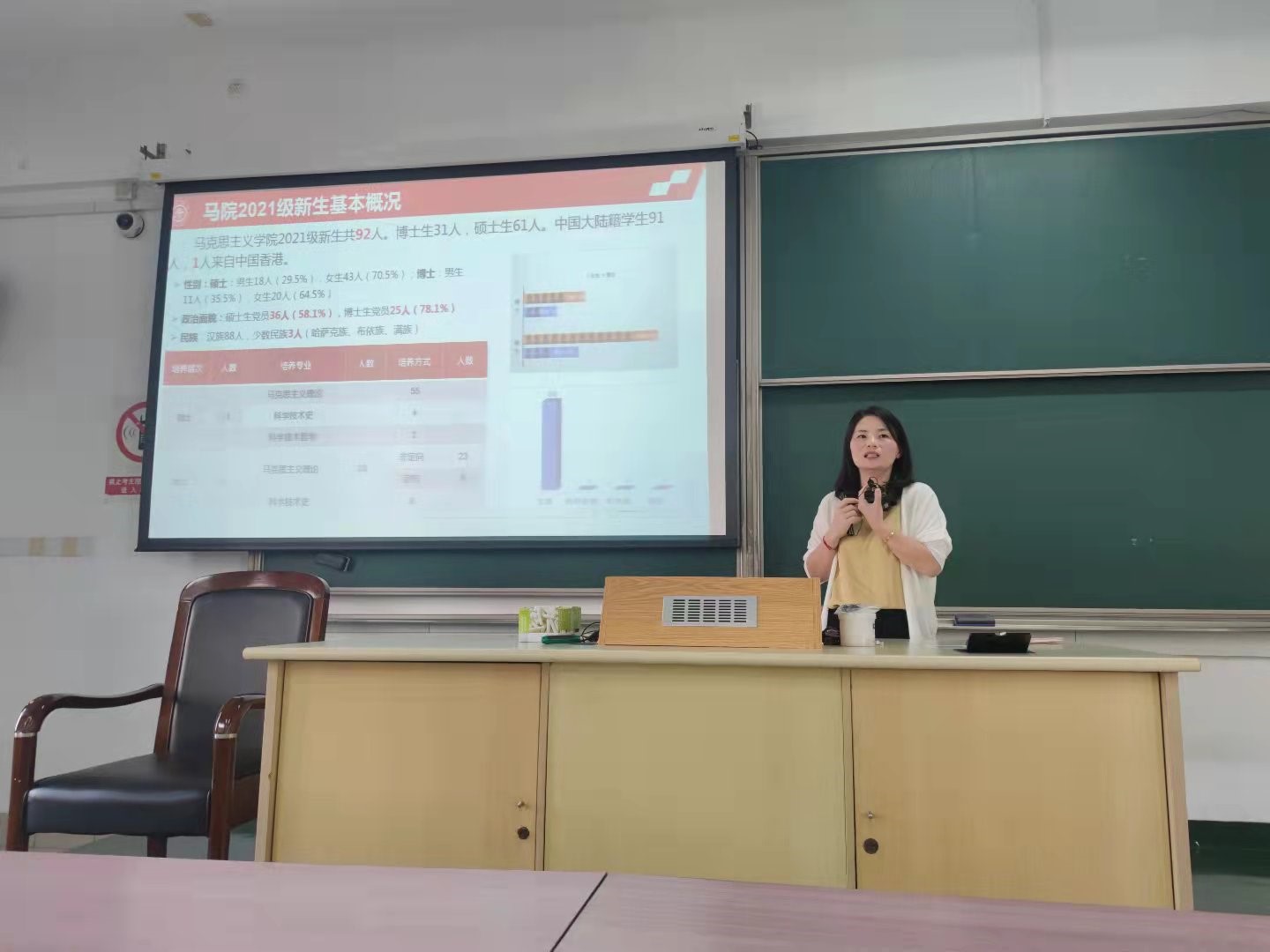9月17日上午,电影天堂 副书记任祝景为同学们详细讲解了学生奖助学金、勤工助学、助学贷款等同学们关心的事务以及学院对学生工作的各类支持计划,让每一位新生感受到马院这个大家庭的悉心关怀与温暖。