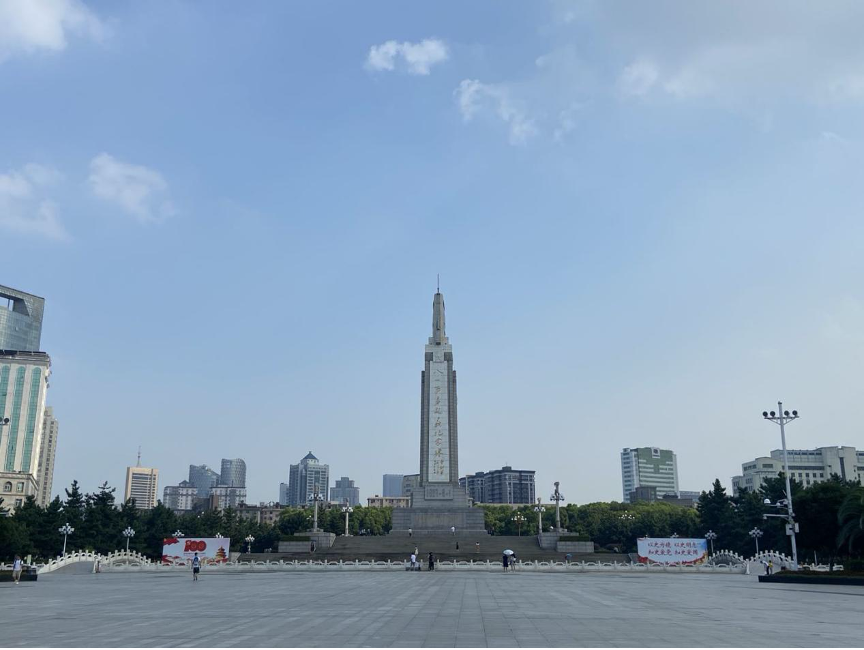 7月31日,实践团走进了军旗升起的地方——江西省南昌市八一南昌起义纪念塔。盛夏的英雄之城,“红色”风采火热依旧,矗立在八一广场南端的八一南昌起义纪念塔,在日光映照下格外雄伟壮观。成员们心怀敬畏,列于塔前,瞻仰碑文,缅怀那段浴血奋战、英勇无畏的革命斗争史,穿越历史长河遥寄哀思致献崇敬。
