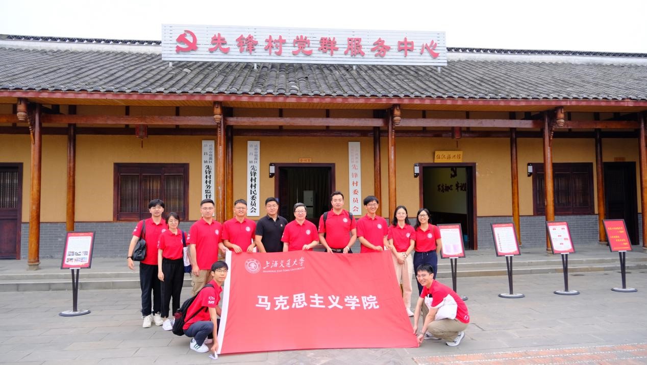 在郫都区唐昌镇先锋村,实践团一行就乡村治理、党建引领、产业发展等议题开展了深入走访。先锋村党委书记任健等有关同志参与活动。