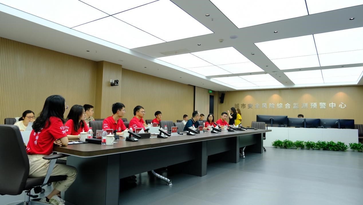 城市综合风险监测预警中心,实践团一行同成都市应急管理局有关同志就城市安全信息化建设议题展开座谈。座谈会上,工作人员向实践团介绍了“智慧蓉城”平台建设情况。作为一项信息化智能平台,“智慧蓉城”建设秉持“能监测、会预警、快处置”的建设初衷,有效保障着在突发安全事件事前、事中、事后等重要环节的城市安全治理能力。成都市应急管理局总工程师李勇,局办公室主任贾国磊,防震减灾处副处长朱昌保等有关同志参与座谈。