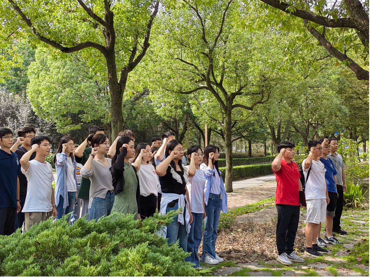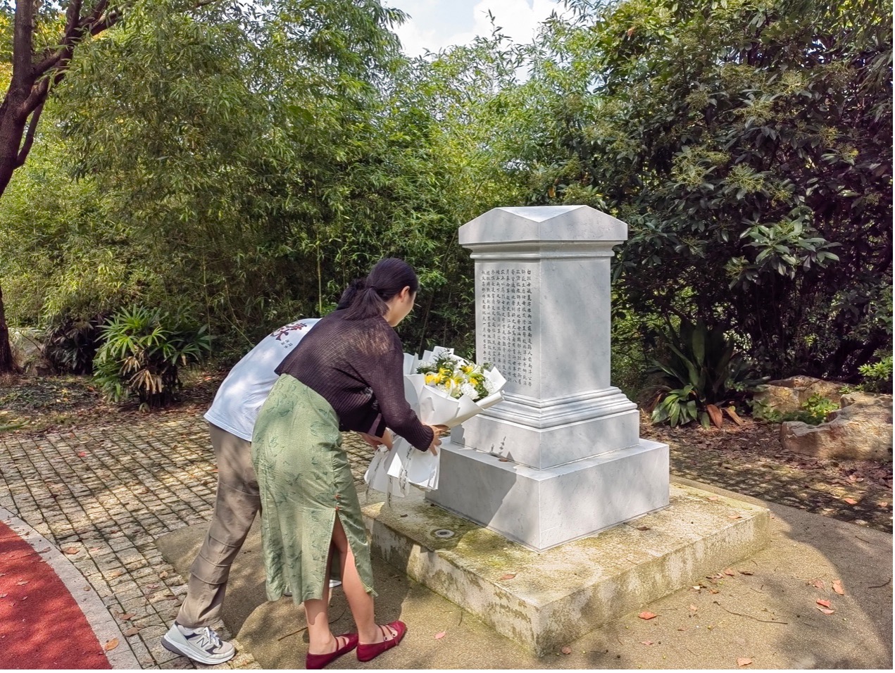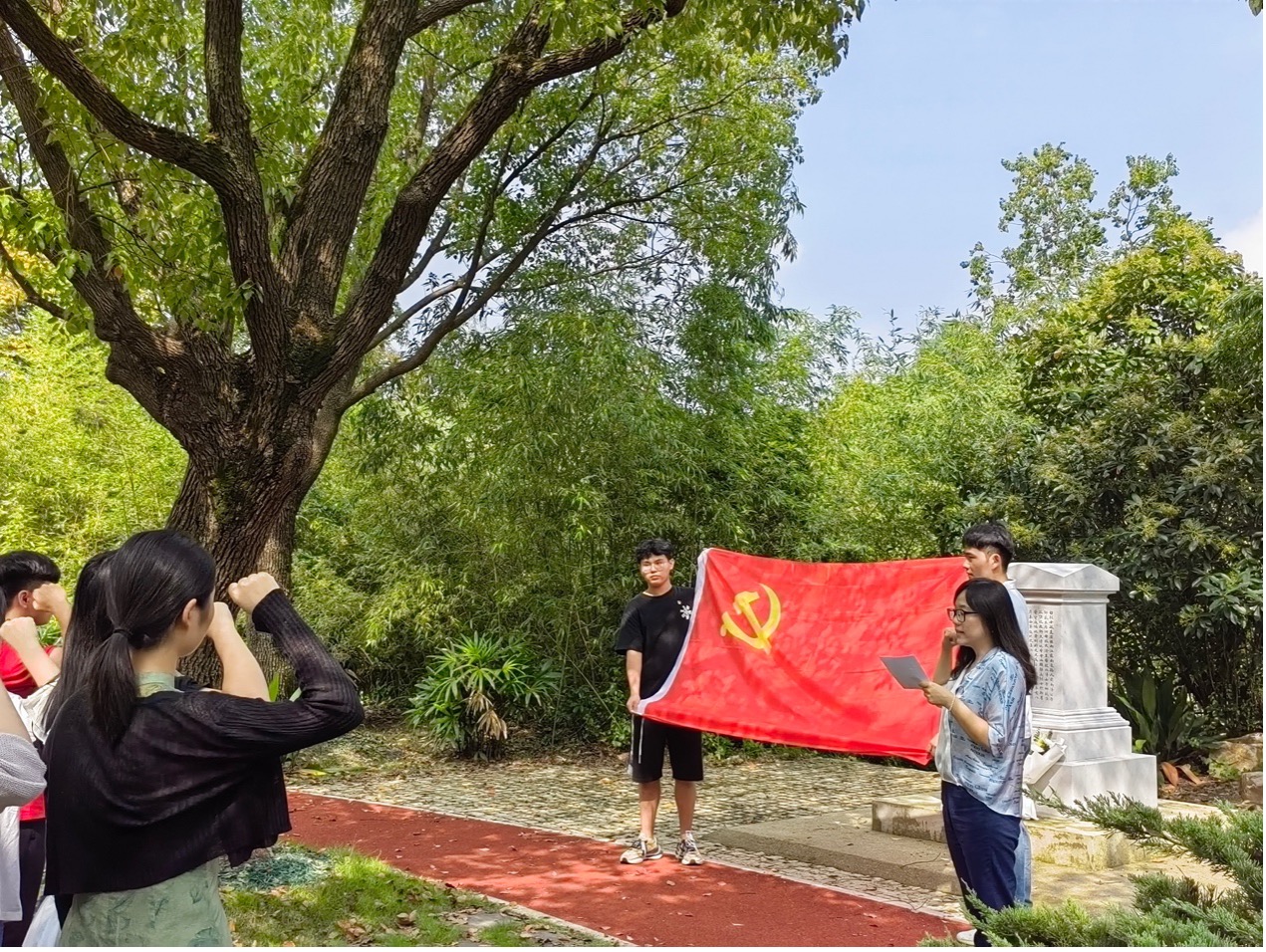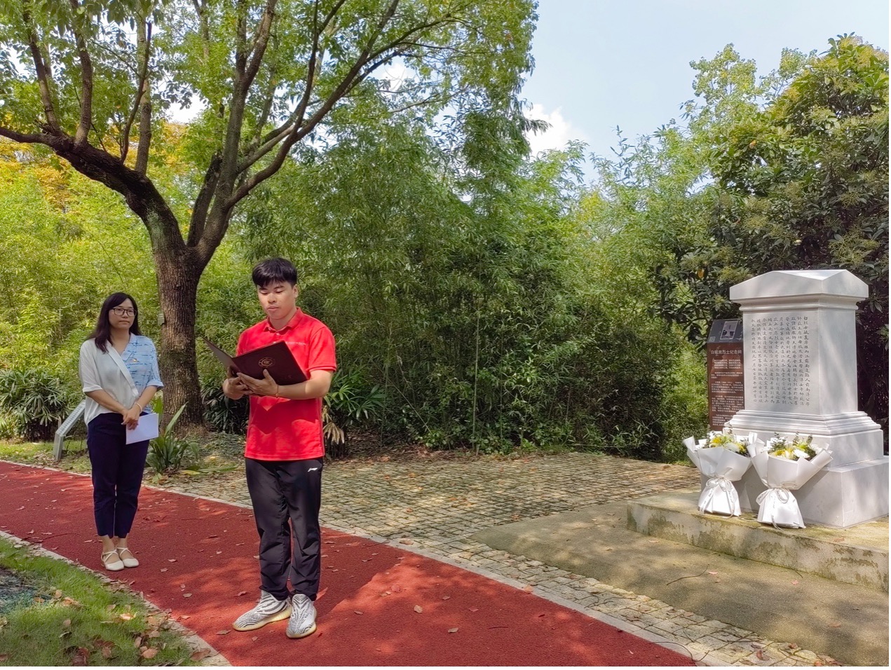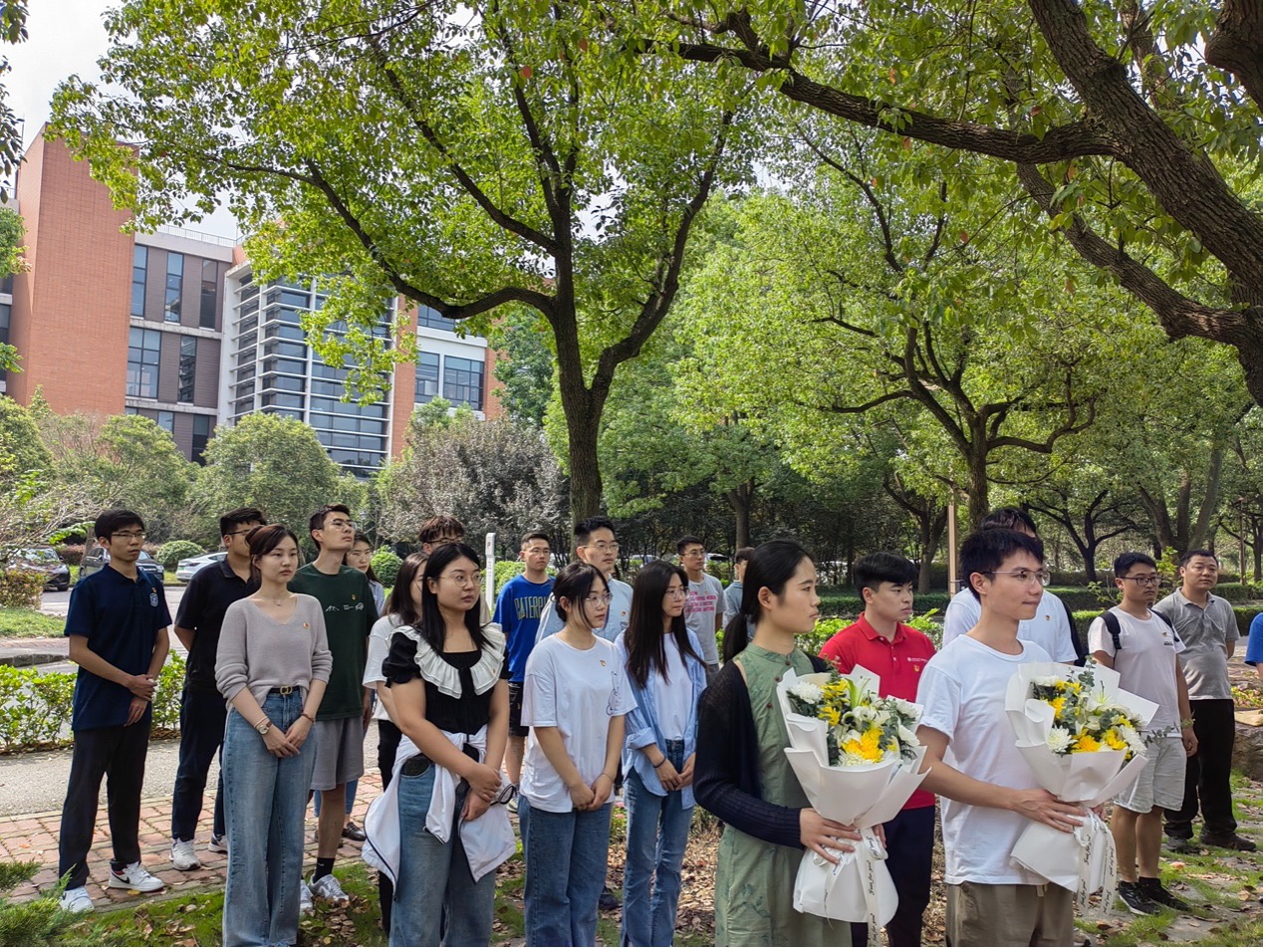 活动首先由博士生党支部书记杨振家和闫艳芳两位同志代表全体党员共同向白毓崑烈士纪念碑鞠躬并敬献鲜花,全体成员向白毓崑烈士纪念碑默哀致敬,表达当代交大学子对革命先烈的崇高敬意和无尽哀思。